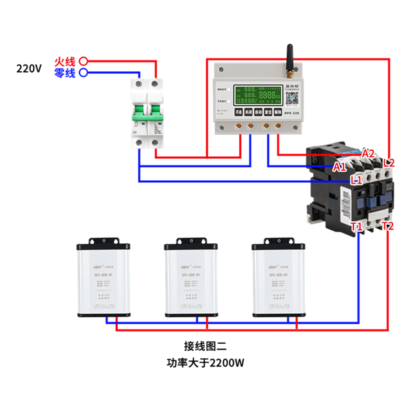 當(dāng)用電器的功率大于2200W,需要添加交流接觸器。